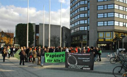 Neuen Rathaus gegen die als rassistisch bezeichneten Praktiken der Ausländerbehörde.