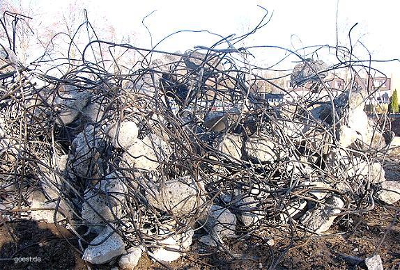 wieder Millionen Klicks. Aber warum reizte der Anblick eigentlich zum Fotografieren? Die Nachrichtenwelt, projiziert tausendfach Bilder von Zerstörung auf meine Netzhaut, oft zerbombte Städte in denen bizzare Landschaften aus Betonbrocken zu sehen sind. Das ordentlich zusammengeschobene Beton-Eisen-Gewirrs hingegen erinnert an Gemälde die ein ähnliches Wirrwar zeigen. |