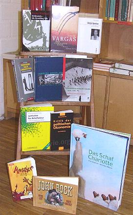 Kapielski , Foto links: Buchladen Rote Straße , Bücher mit Bezug zum Programm des Lit. Zentrums |