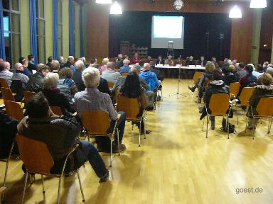 Stadtteil-Zentrum in Geismar soll Flüchtlingsunterkunft werden 4.1.16 / Zu den Planungen für eine Unterbringung von Flüchtlingen im Moritz-Jahn-Haus fand am Montag, 4. Januar 2016, eine öffentliche Informations- und Diskussionsveranstaltung in der Verwaltungsstelle Geismar Kerllsgasse 2 statt. OB Köhler, Sozialdezernentin Dr. Schlapeit-Beck, Ortsbürgermeister Thomas Harms und G. Gruß Leiter Soziales in der Stadtverwaltung kamen mit ca. 80 Menschen zusammen um die Verwendung des Gemeindehauses als Flüchtlingsunterkunft zu erläutern. Ziel der städtischen Veranstalter war u.a. die "Einbindung von ehrenamtlicher Arbeit in die Flüchtlingshilfe Göttingen" zu thematisieren - einfacher gesagt: die Geismaraner um Unterstützung bei der Flüchtlingshilfe zu bitten.