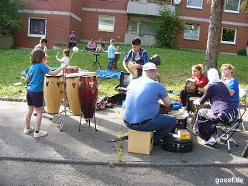 Frühlingsfest von Nachbarn und Flüchtlingen" am 21. Mai 2016 veranstaltete die Nachbarschaft des Flüchtlingsheimes im ehemaligen IWF ein Frühlingsfest, an dem sich neben den Nachbarn, benachbarten Schulen und zahlreichen Verbänden und Privatinitiativen auch die Bewohner*innen des Heimes selbst beteiligten. Beteilgt sind im einzelnen: Die Bewohner*innen des Hauses, die Initiative Willkommen Flüchtlinge am Klausberg (IWF), das Bonveno-Team (Heimleitung), mehrere private Nachbarschaftsinitiativen , Lehrer*innen und Schüler*innen des TTheodor-Heuss-Gymnasiums und der Höltyschule, as Montessori-Kinderhaus, das Kinderhaus am Nonnenstieg, die SternApotheke, die Freie Altenarbeit und die Student*innen der Wohnheime Alfred Delp/Edith Stein Auf einer Bühne fanden ab 15 Uhr traten Gruppen mit orientalischer und westlicher Musik auf; so waren auch „Better Than“ und die „BerndundBernieband“ mit von der Partie. und: Montessori -Kinderchor, Hölty-Schüler*innen singen, "Aziz Muhammed Ali - Oud und Gesang", Samir Alali - SAZ "Bushkin Muhammed ALi" Gesang, Persische Musik mit OMID, Herr Abdul W, seit über 40 Jahren in Deutschland ansässiger Syrer, hat über die Heimat der Geflohenen einen Lichtbildvortrag gehalten (besonders am Beispiel von Aleppo). Daneben gab es zahlreiche Angebote für Kinder (Ponyreiten, Hüpfburg, Clowns, Sinnespfad, Schminken), einen Sportparcours und anderes. Prima Kaffee und Kuchen bis zu syrischer und kurdischer Küche. Das