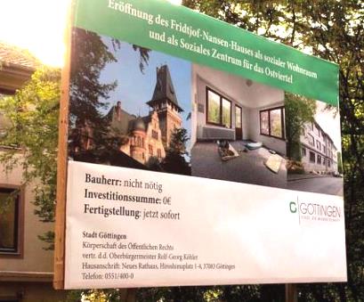 1. Die Stadt Göttingen hat 2018 auf Ihre Initiative, Herr Köhler, und mit Ihren Stimmen, Mitglieder des Stadtrats, mit dem Fridtjof-Nansen-Haus ein weiteres Mal und ohne Not Wohnraum an einen Privatinvestor verkauft. Ähnlich ist übrigens die Vernichtung eines öffentlichen, sozialen Wohnraumprojekts auf dem ehemaligen IWF-Gelände am Nonnenstieg verlaufen.
