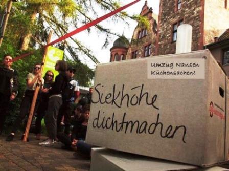 Montag den 7.5.18 : Kurz bevor das Goetheinstitut das von ihr gemietete Fridtjof-Nansen-Haus an die Stadt zurückgibt hat die Leitung des Goethe-Instituts Strafanzeige gegen die Hausbesetzung gestellt. Dies hat dazu geführt, dass am Montag morgen das Wohnheim von einer Hundertschaft der Polizei geräumt wurde. Die Stadt will das leerstehende Gebäude an einen Investor verkaufen und verhandelt mit einem nach unten offenen Preislimit.