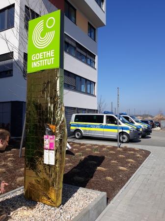 Protest vor dem neuen Haus des Goetheinstituts am 22.3.19