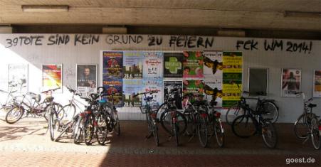 Vor und während der WM gibt es Proteste wegen des Widerspruchs von Armut einerseits und Geldverschwendung für die Durchführung der Fussball-Weltmeisterschaft. Brasilien rechnet mit ca. 11 Milliarden € Kosten für die Weltmeisterschaft. Eine Viertel Million Brasilianer_innen mussten an den zwölf WM-Spielorten dem Neu- und Umbau von Stadien weichen. "Die Vorbereitungen