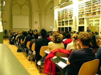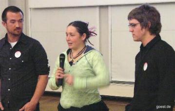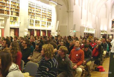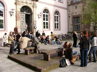 Beim Besuch des Veranstaltungsortes an verschiedenen Tagen fiel immer wieder das ausserordentlich junge Publikum auf. "Die Jungen treffen hier die Alten" war hierzu der Kommentar von Beate Engelbrecht "... und lernen von ihnen". In der Tat: im Innenhof waren stets mehrere Grüppchen anzutreffen, die sich offensichtlich in der Diskussion mit jeweils älteren gebildet hatten.