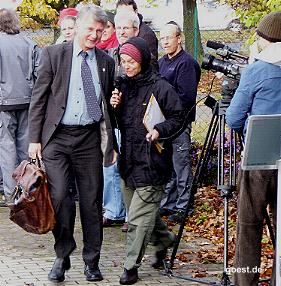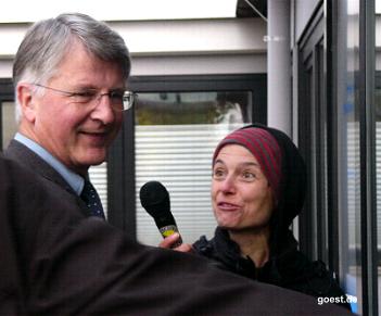 Auf die Fragen einer Vertreterin des "Beschäftigen-TV" mochte Unipräsident v. Figura nicht antworten, obwohl die Kollegin den Präsidenten hartnäckig bis zur Eingangstür mit ihren Fragen verfolgte.