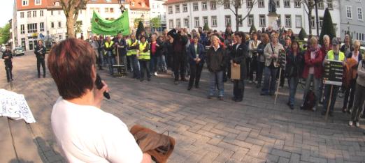 Während dessen fand vor dem Gebäude am Wilhelmsplatz eine Kundgebung statt, auf der Mehmet Tugcu (Die Grünen, Stadrat Göttingen) und Gerd Nier (Die Linke, Bundestagskandidat) sprachen. Auch ein Studentenvertreter sprach zum Abschluß der Kundgebung. Tom Wedrins (SPD / Vorsitzender der Stadtratsfraktion der SPD nahm trotz vorheriger Zusage und öffentlicher Ankündigung von ver.di nicht an der Veranstaltung teil.