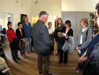 Das Foto zeigt das Gespräch mit dem Sicherheitsdienst, in dem ein Verdi-Vertreter versucht, das ausgesprochene Hausverbot zu diskutieren. (Die Sicherheitsdienstleute wollten nicht fotografiert werden und haben ein S auf dem Kopf)