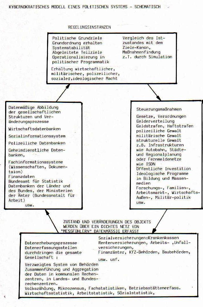 Die verschiedenen Bausteine" (Volkszählung, Computerausweis, Sicherheits-gesetze, Computernetze usw.) können unter dem Begriff "Kybernokratie" in einen systematischen Zusammenhang gebracht werden.