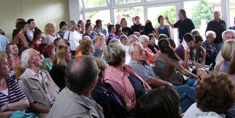 Die Anwesenden sprachen nun in kleinen Gruppen mehr oder weniger aufgeregt und streitend miteinander. Dabei konnte mehrfach festgestellt werden, dass diejenige Frau die sich als "Schriftführerin der Anwohner" ausgab nur von einer kleinen Gruppe der AnwohnerInnen unterstützt wird. Die Mehrheit wollte eher "normal" über die Themen reden. Diese "Schriftführerin hatte einen sehr rassistisch aufgeladenen Brief an den Oberbürgermeister geschrieben, was letztlich zu der aufgeregten Stimmung bei der Veranstaltung geführt hat.