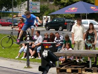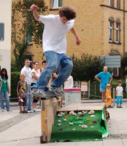 Skateboards - Wettbewerb "Rathaus Open" 2009 Veranstaltertext (rathausopen@web.de) : Am Wochenende des 1. Und 2. August ist es wieder soweit. Zum elften Male in folge findet auf dem Hiroshimaplatz vor dem Neuen Rathaus der Skateboardwettbewerb Rathaus Open statt. Die Veranstaltung wird von Göttinger Skateboardfahrern ehrenamtlich organisiert und stößt aufgrund der einzigartigen Lages des Platzes, der familiären Atmosphäre und vielen, selbst gebauten Hindernissen sowohl bei Göttinger Passanten als auch bei Fahrern aus ganz Deutschland auf großes Interesse. Durch musikalische Untermalung, Imbissbude und Moderation können auch Zuschauer ohne Fachkenntnisse einen interessanten Einblick in das Skateboardfahren gewinnen. Bei dem sogenannten Street Contest am Samstag werden die Skateboarder in einer Profi- und einer Amateurgruppe um zahlreiche Geld- und Sachpreise gegeneinander antreten. In jeweils zwei Läufen haben die Fahrer die Möglichkeit ihr Talent und ihre Kreativität unter Beweis zu stellen. Auf dem gesamten Platz, der dieses Wochenende für den Fußgängerverkehr gesperrt finden sich speziell angefertigte Hindernisse. Mit waghalsigen Sprüngen und komplizierten Tricks, versuchen die Teilnehmer hier die Gunst der Punktrichter zu gewinnen, die nicht nur die Schwierigkeit der Tricks, sonder auch die ästhetische Ausführung bewerten. Die Teilnehmer schätzen die lockere Atmosphäre, bei der weniger das Gewinnen und Verlieren, sonderdas Treffen mit Skateboardern aus anderen Städten und der Spaß am Skateboard fahren im Vordergrund steht. Darüber hinaus wird am Ende des Tages ein Best Trick-Wettbewerb durchgeführt, bei dem das Publikum durch Beifallsbekundungen über den jeweiligen Sieger entscheidet.